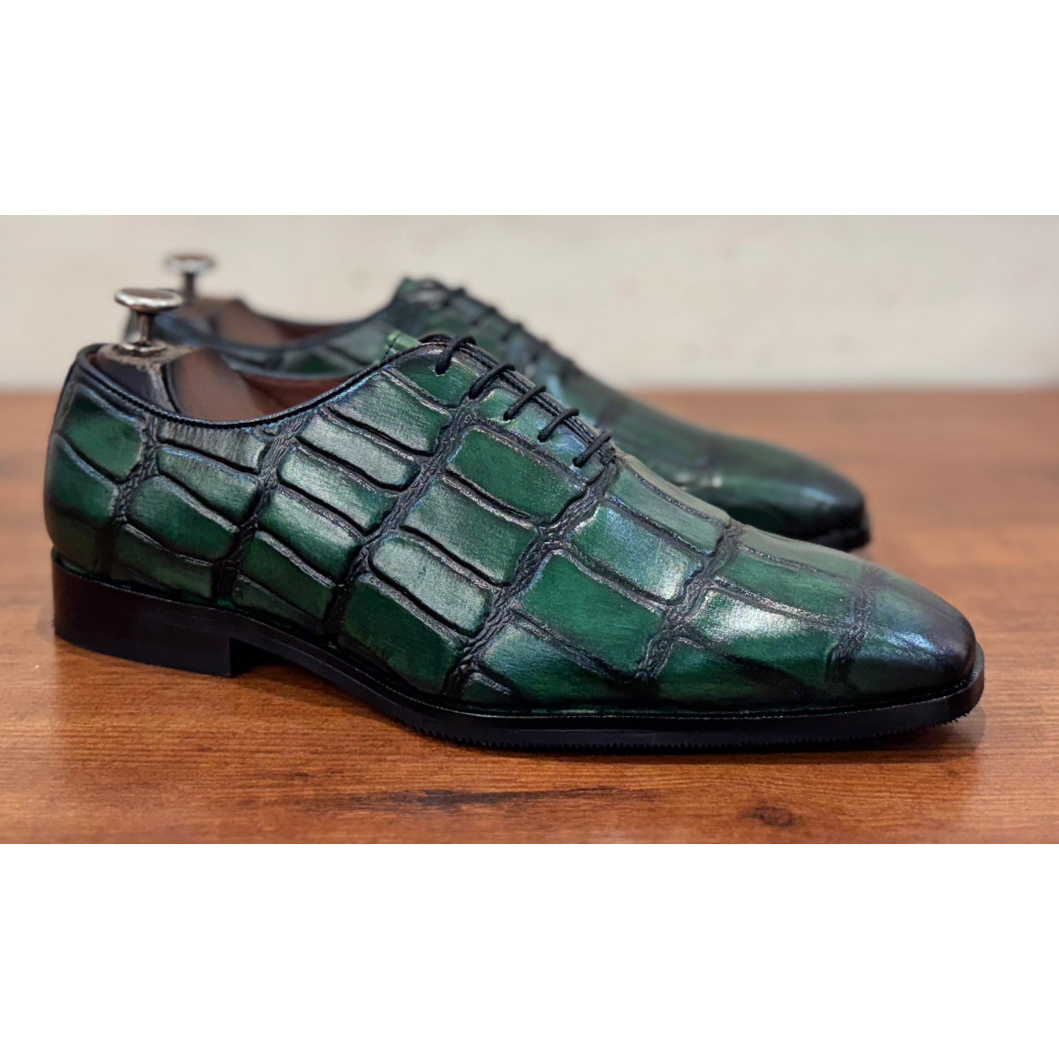 Green Croco Oxfords