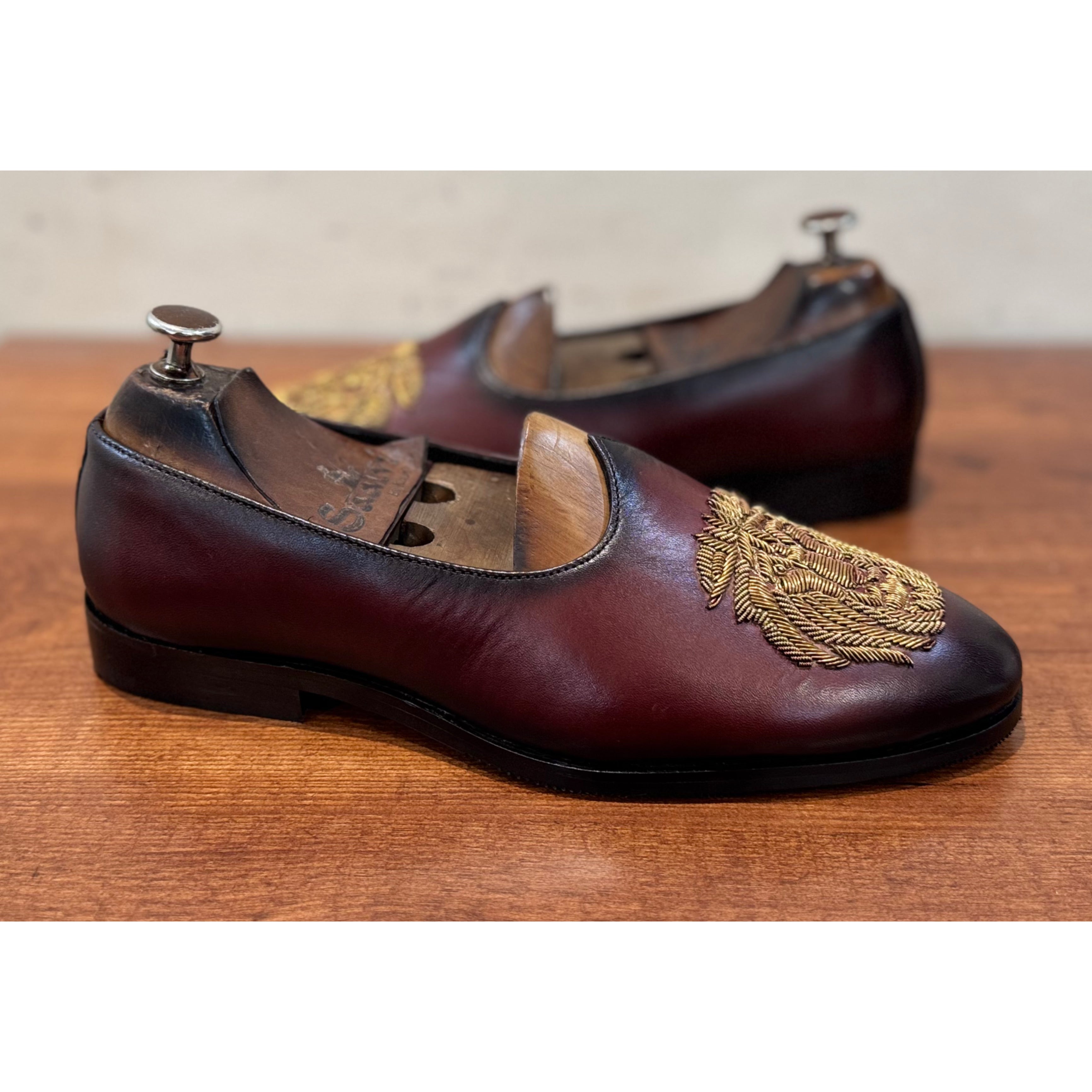Wine Velvet Crown Zardosi Embroidery Jalsa