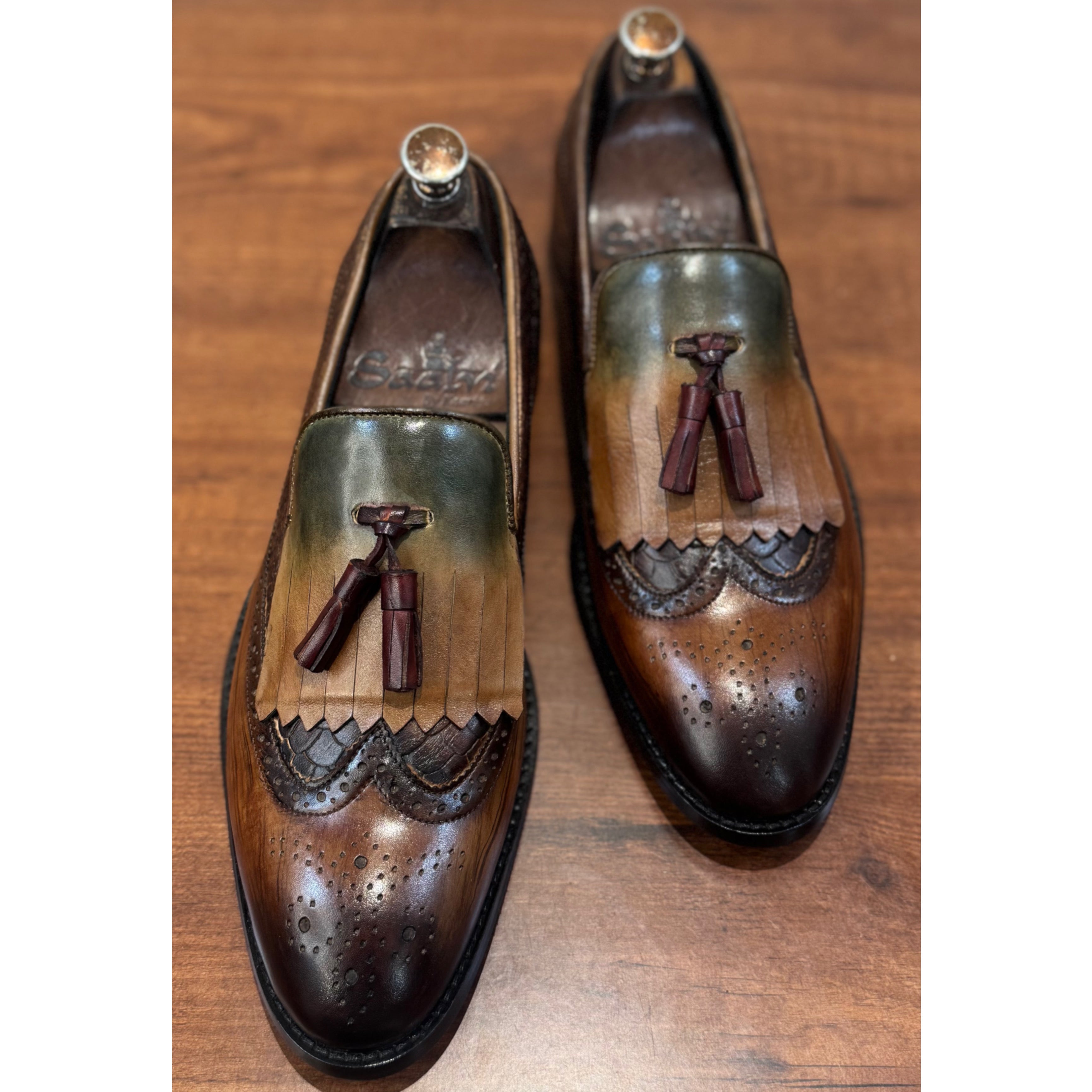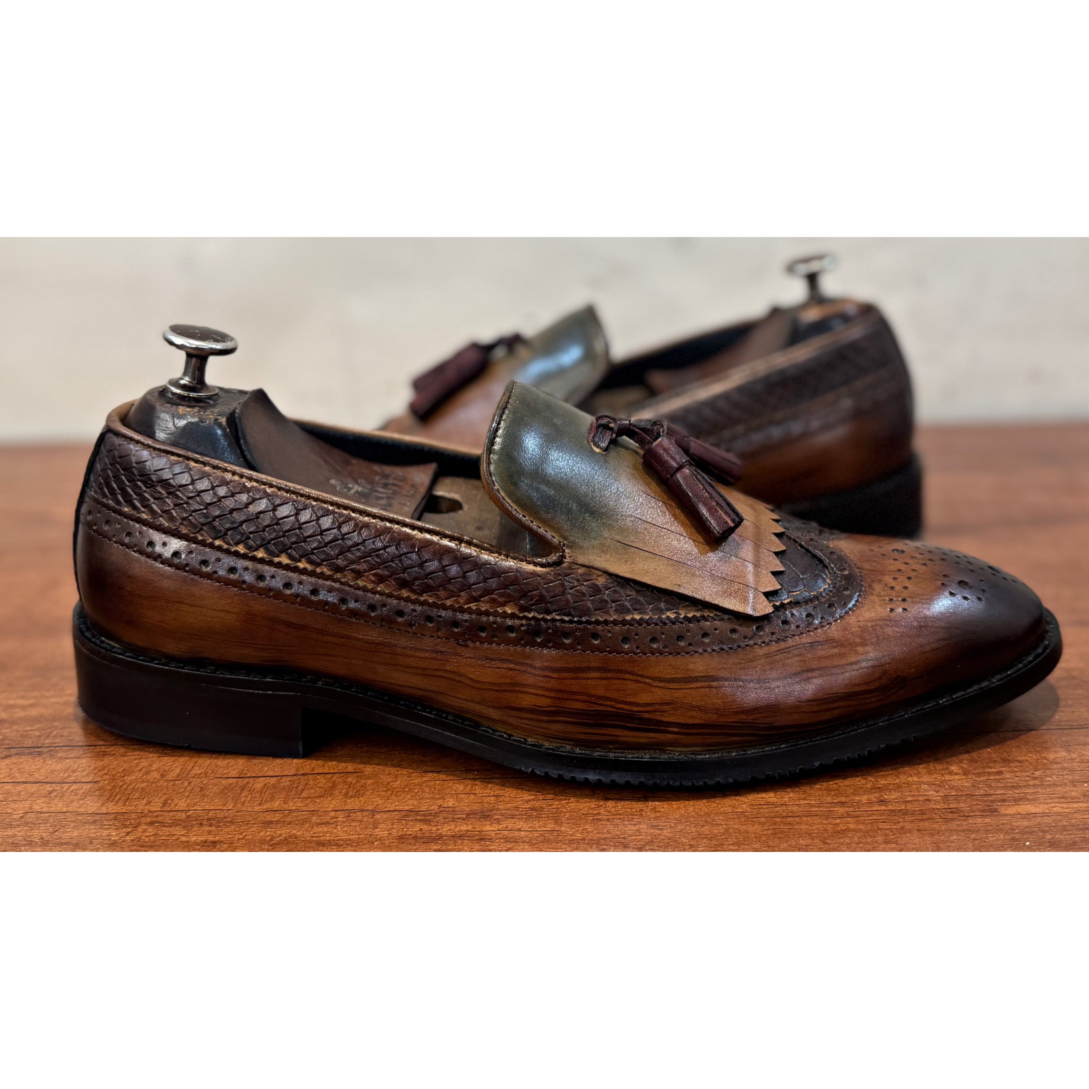 Wingcap Loafers With Fringes& Tassels Hand Patina